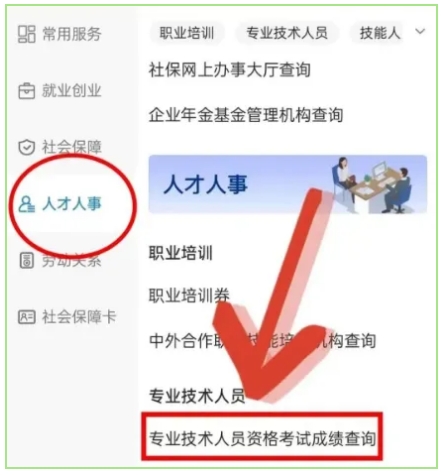 3、选择“人才人事”、点击“专业技术人员资格考试成绩查询”;