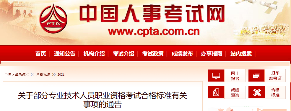 中国人事考试网:2021年一建资格考试成绩合格标准