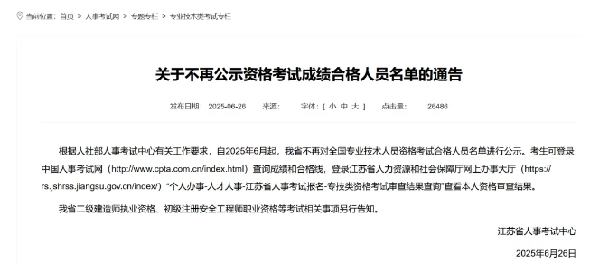 江苏人社厅:紧随其后,官方文件确认取消成绩合格人员公示环节。