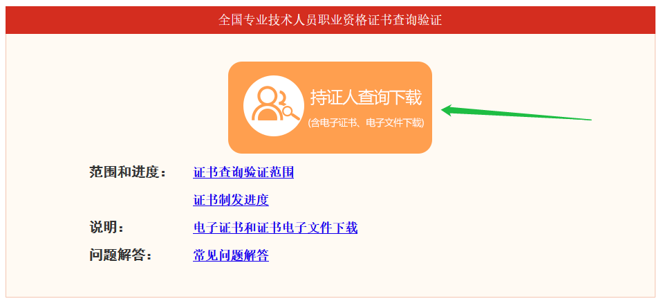 持证人员通过中国人事考试网“专业技术人员职业资格证书查询验证系统”查看和下载本人持有的电子证书或证书电子文件。