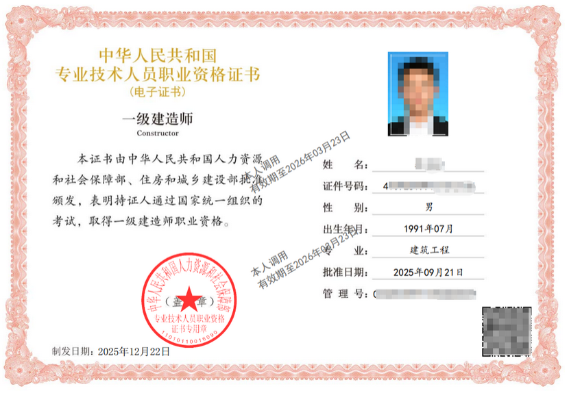 一级建造师电子证书长什么样子?有没有样本图片参考?下面带你一睹一级建造师电子证书的真容。
