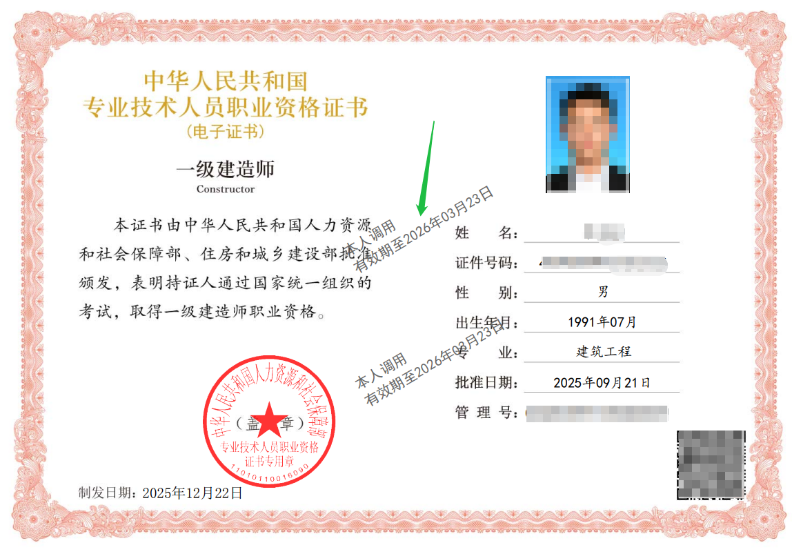 一级建造师电子证书加注是指在电子证书上设置使用场景和有效期信息。