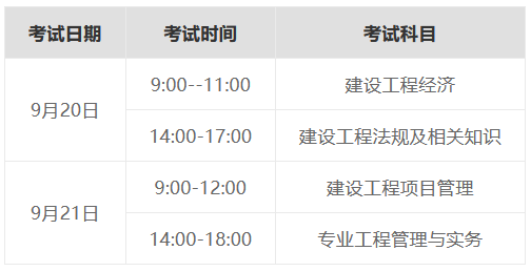 2025年一级建造师考试分两天进行,考试时间安排在9月20日、21日举行,具体安排如下:
