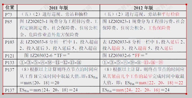 一级注册建造师《项目管理》考试新旧教材对比(2011、12年)