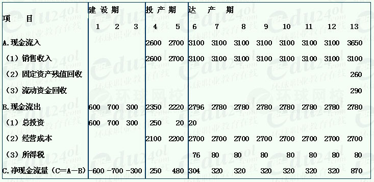 l现金流入CI(Cash Inflow)。工程经济分析中,现金流入包括主要产品销售收入、回收固定资产残值、回收流动资金。