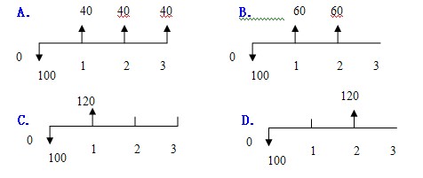 在其他条件不变的情况下,考虑资金时间价值时,下列现金流量图中效益最好的是(C)。