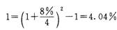 年利率8%,按季度复利计息,则半年期实际利率为()。