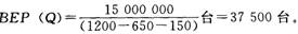 产品销售税金及附加为单位产品售价的5%,经分析求得产销量盈亏平衡点为年产销量