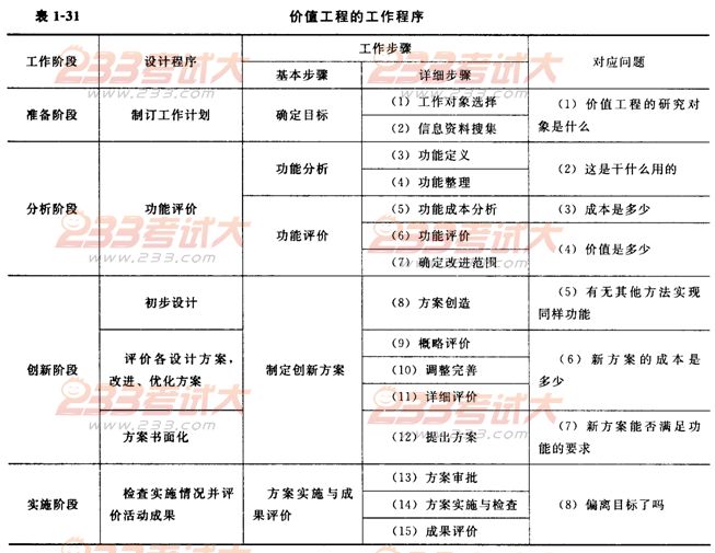 价值工程的工作程序见表1-31。