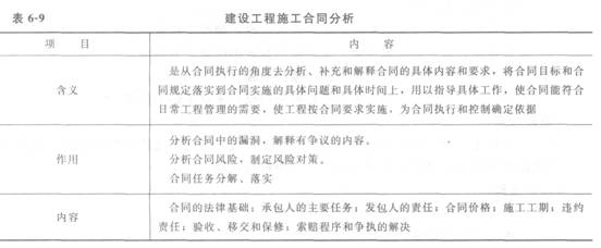 建设工程施工合同分析见表6-9。