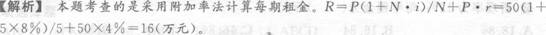 【解析】租金计算方法有附加率法和年金法。此题根据题干条件使用附加率法,租金=95×(1+6×8%)/6+95×5%=28.18(万元)。