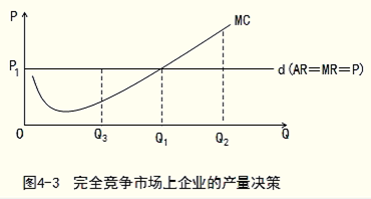 在任何一个市场上,无论长期决策还是短期决策,企业进行产量决策的依据是:MR=MC的原则,因为此时企业的利润最大。利润最大的含义:有利润时利润最大,有亏损时亏损最小。