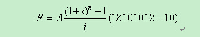 称为等额支付系列终值系数或年金终值系数,用符号(F/A,i,n)表示。式子(1Z101012-10)又可写为: