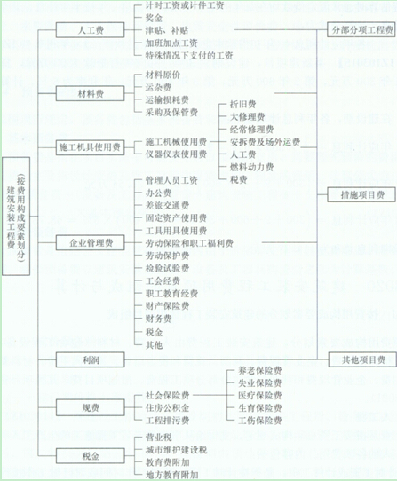 IZ103021 按费用构成要素划分的建筑安装工程费用项目组成