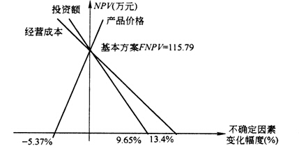 24.根据下面的单因素敏感性分析图,投资额、产品价格、经营成本三个不确定性因素对方案的影响程度由高到低依次为( )。