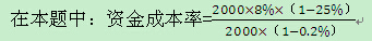 根据资金成本率计算公式,资金成本率=资金占用费/筹资净额,并需要考虑抵扣所得税因素。
