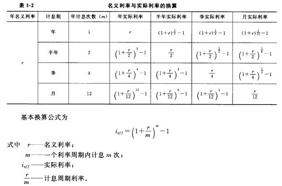 名义利率;计息周期有效利率;年有效利率;名义利率与实际利率的换算。