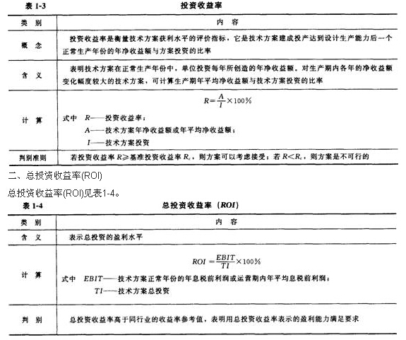 2015年一级建造师考试工程经济预习知识:投资收益率指标