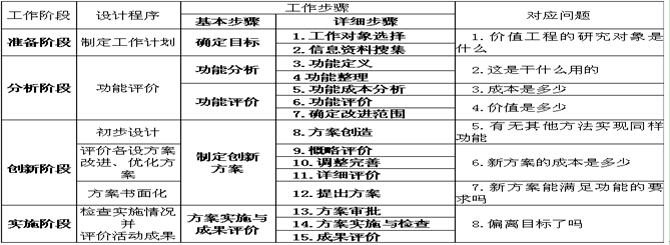 注意:价值工程分析阶段,功能分析(3功能定义、4功能整理);功能评价(5功能成本分析、6功能评价、7确定改进范围)。