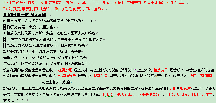 设备租赁与购置方案的比选,跟互斥投资方案的比选方法相同。(重点考察:附加率租金计算、相关概念)