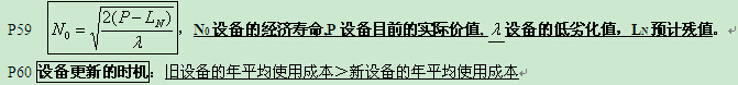 P60设备更新的时机:旧设备的年平均使用成本>新设备的年平均使用成本