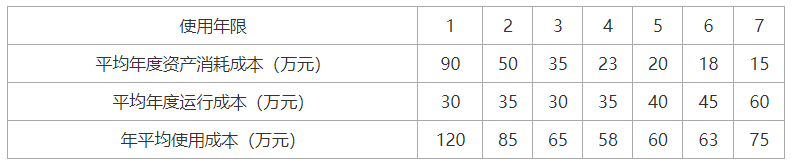 解析:年平均使用成本=平均年度年运行成本+平均年度资产消耗成本