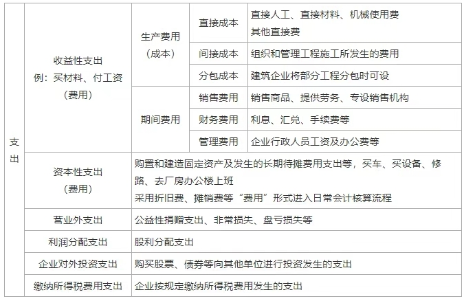 考点一:支出、费用和成本的关系
