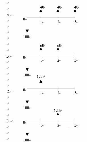 6.在其他条件相同的情况下,考虑资金的时间价值时,下列现金流量图中效益最好的是(C)。