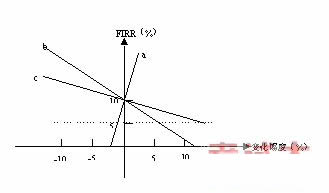 10.某项目的单因素敏感性分析图如下,已知基准折现率为5%,则三个不确定性因素a、b、c,按敏感程度由大到小的顺序排列为()