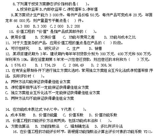 2011一级建造师考试工程经济精选试题五(2)