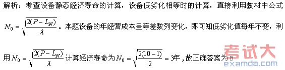 8.某设备原始价值为10万元,无论使用多少年,期末设备的残值均为1万元,设备的年使用费见下表。则该设备的静态经济寿命为( )