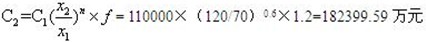 7、已知建设某生产70万吨化工装置的投资额为110000万元,现拟建生产120万吨的同类装置,工程条件与上述装置类似。生产能力指数为0.6,价格调整为1.2,则拟建装置的投资额估算为( )万元。