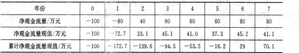 7.某项目的现金流量表如下,已知ic=10%.则该项目的动态回收期为( )。