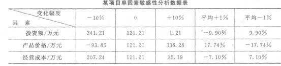 - 第55题 某项目单因素敏感性分析,评价指标为财务净现值,不确定性因素为投资额、产品价格、经营成本,从下表所示计算结果可知,项目对三个因素的敏感程度由高到低依次为( )。