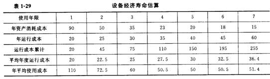 1.某设备在不同的使用年限(从1年到7年)下,年资产消耗成本和年运行成本见表1-28(单位:万元)。则该设备的经济寿命为()年。