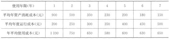 【解析】计算各年年平均使用成本如表2所示,可知第4年的580元为最低,故该设备的经济寿命为4年。