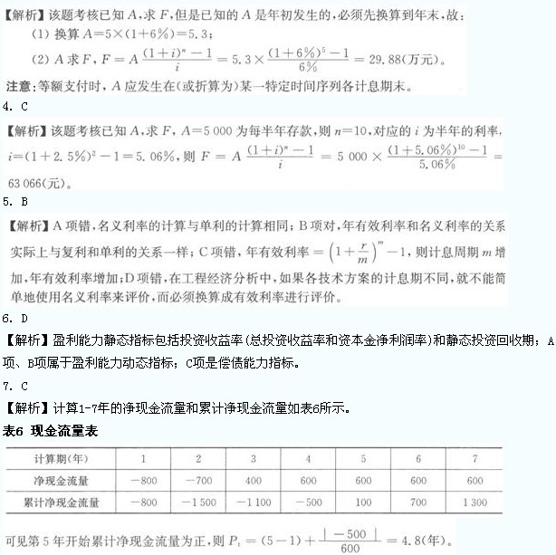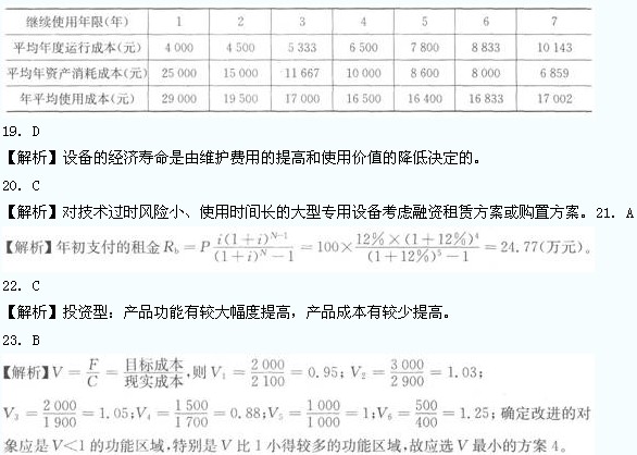 【解析】计算各年年平均使用成本见表7,可知第5年的16 400元为最低,故该设备的经济寿命还有5年。