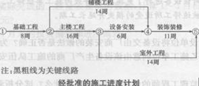 元。乙方提交了一份粗略的施工网络进度计划,并得到甲方的批准。该网络进度计划如下图所示。