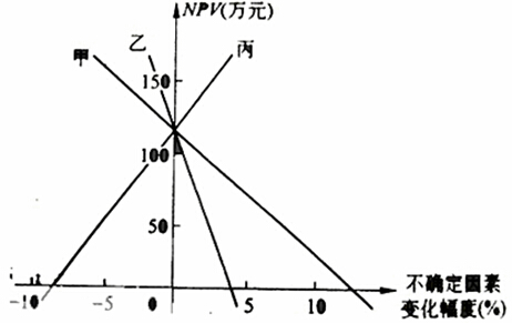 【例题·单选题】现对技术方案进行单因素敏感性分析,选择净现值作为分析对象,如下图所示,甲、乙、丙三个不确定因素按敏感性由大到小的排列顺序是( )。