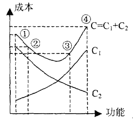 66.如下所示产品功能与成本关系图中,C1表示生产成本,C2表示使用及维护成本,①、②、③、④点对应的功能均能满足用户需求,从价值工程的立场分析,较理想的组合是( )。