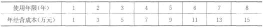 11.某设备原始价值为10万元,预计期末设备的残值均为1万元,设备的年使用费如表2 所示。则该设备的静态经济寿命为( )年。