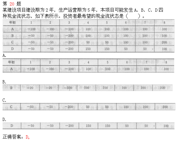 第 14 题 某设备原始为800元,不论使用多久,其残值均为零,而其使用费第一年为200元,以后每年增加100元,若不计利息,则该设备的经济寿命是( )。