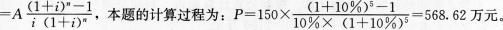 某投资项目,计算期为5年,每年年末等额收回l50万元,当利率为10%时,则开始需一次投资( )万元。