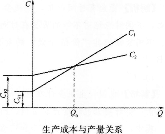 据此可绘出对比方案的生产成本与产量的关系曲线,如图所示。
