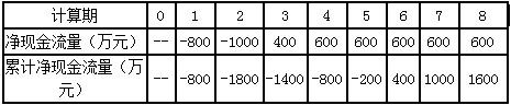 【答案解析】 本题考查的是经济效果评价的内容。先折算到年末计算终值,-8000+{3000×[(1+0.1)4-1] / [10%×(1+10%)4]}/(1+10%)=-8000+3000×2.882=645.4万元。计算静态投资回收期,画出现金流量表,从第二年每年年末收入3000万,则到第4年末时收入9000万,4-(9000-8000)/3000=3.67年。