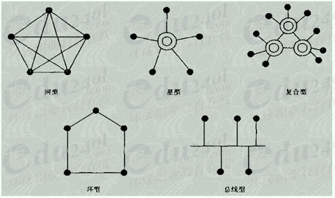 如图1 电信网的基本结构 2.星形网又称辐射网 优点:与网形网相比,降低了传输链路的成本,提高了线路的利用率 缺点: 网络的可靠性差,一旦中心转接节点发生故障或转接能力不足时,全网的通信都会受到影响。 适用场合:传输链路费用高于转接设备、可靠性要求又不高的场合,以降低建网成本。 3.复合型网 结构:是由网状网和星形网复合而成的。它以星形网为基础,在业务量较大的转接交换中心之间采用网状网结构. 优点:兼并了网状网和星形网的优点。整个网络结构比较经济,且稳定性较好。 .适用场合:规模较大的局域网和电信骨干网中广泛采用分级的复合型网络结构。 |