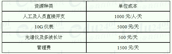 施工单位的资源成本如下表(其它成本不计):