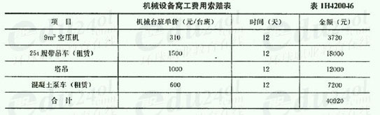 事件1:由于业主修改工程设计造成施工单位机械设备窝工费用索赔.见表lH420046。