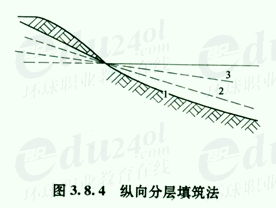 (4)原地面纵坡大于12%的地段,可采用纵向分层法施工,沿纵坡分层,逐层填压密实。