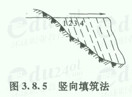 (1)竖向填筑法(倾填法):主要用于二级及二级以下且铺设低级路面的公路在陡峻山坡施工特别困难或大量爆破以挖作填路段,以及无法自下而上分层填筑的陡坡、断岩、泥沼地区和水中作业的填石路堤。该方法施工路基压实、稳定问题较多。